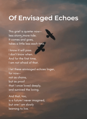 I am not grieving you anymore—not the way your hands once knew my name.I have learned the shape of goodbye,set it gently on the shelfwhere truths are kept. What aches is the futurewe never reached. The quiet house we planned with laughter,the mornings folded into shared routines,the ordinary miracleswe thought were guaranteedsimply because we believed... Continue Reading →