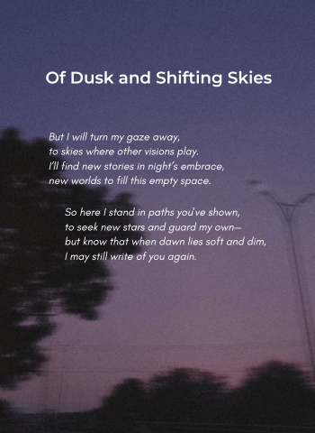 My world’s a dawn I’ve grown to know, with solitary stars in a silent glow. in shadows safe, in light restrained, in freedom fierce and unchained.